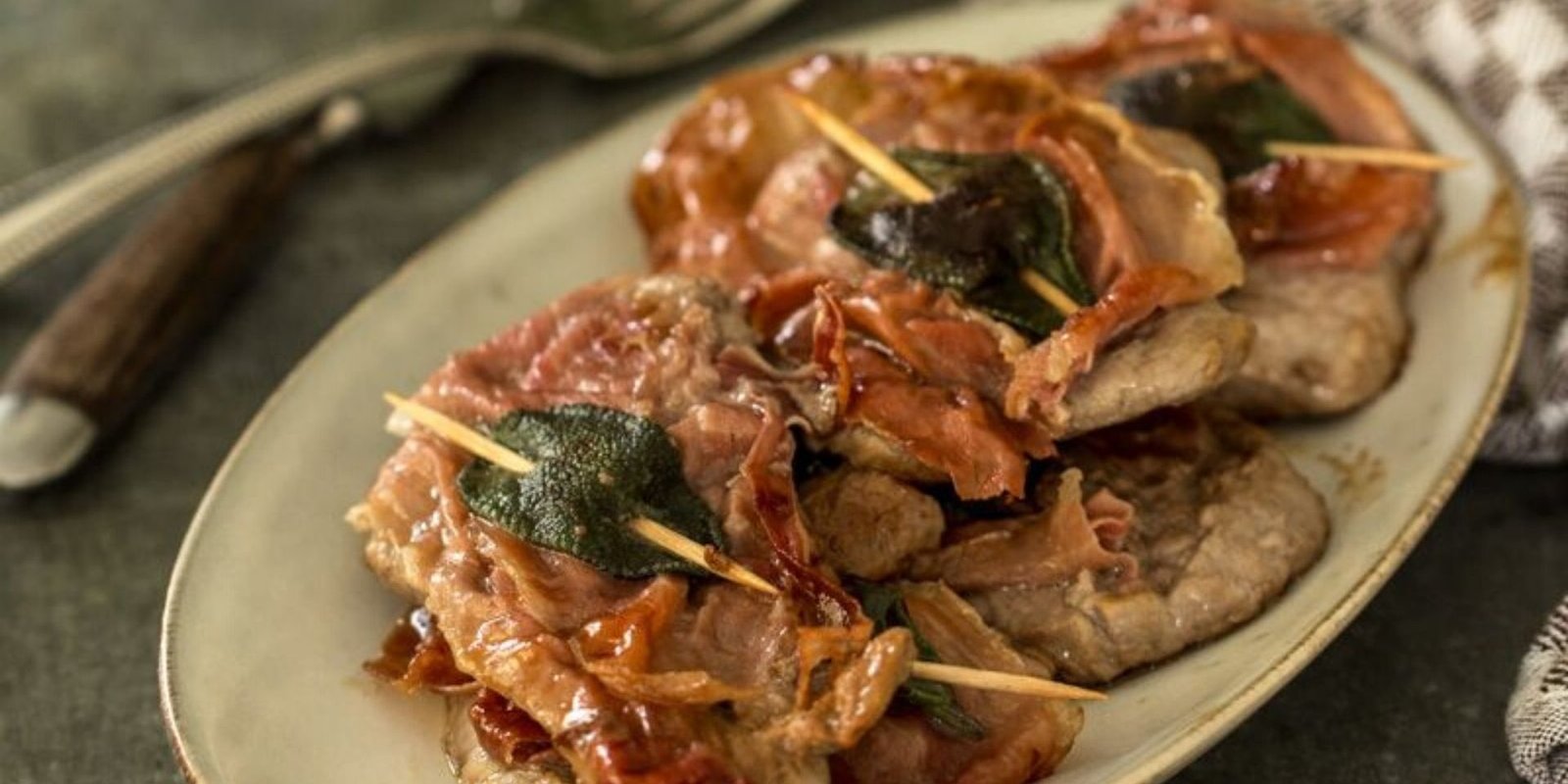 - Adagiate su ogni fettina di carne, una fettina di prosciutto crudo e una foglia di salvia. Fermate il tutto con uno stuzzicadenti.